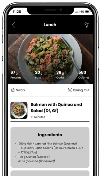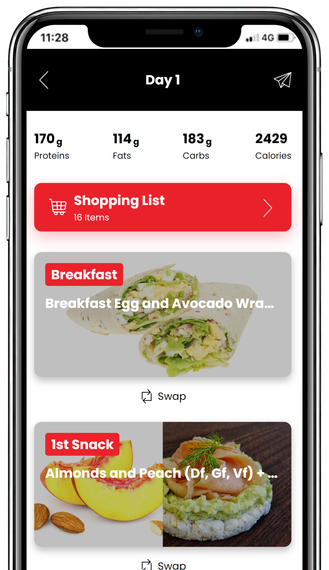 Fully customized meal plan customized to YOU & YOUR goals. Updated every month based on your progress. Choose from General, Vegetarian and Vegan, Dairy Free and Gluten Free meals and more!